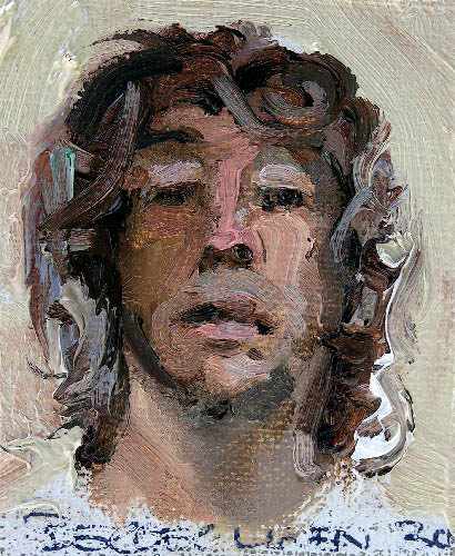 Whenever I am disatisfied with my painting I invariably find myself turning to self portraiture. These small sketches were painted quickly without any attempt at artifice, vanity or even self expression. I'm more interested in the paint than anything else. I deliberately distanced myself from the mirror which is also very dirty and gives me only a dim view of my reflection, about the size of a postage stamp.